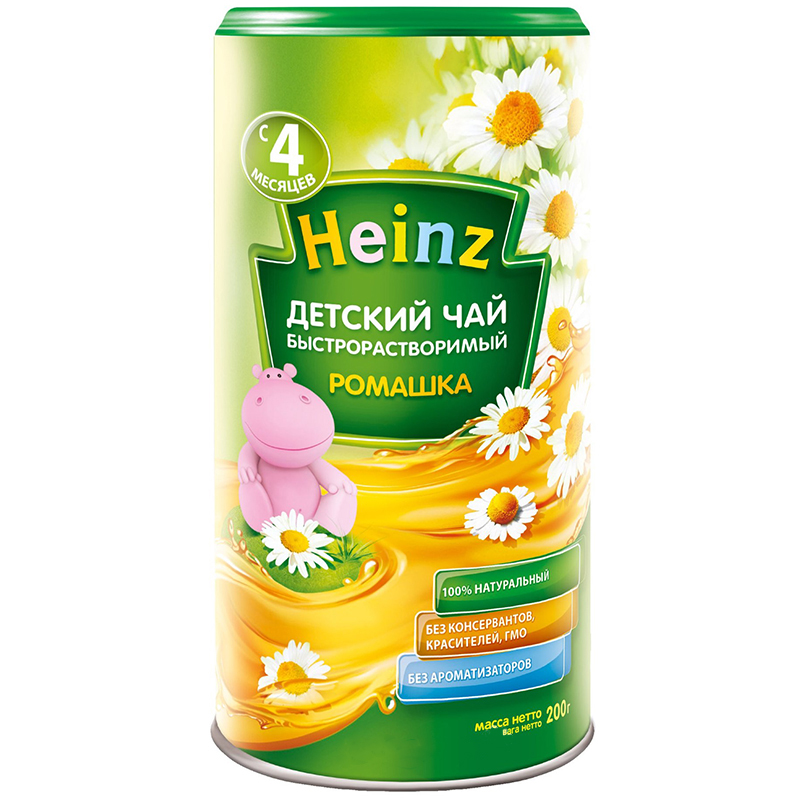 Trà Heinz hoa cúc 200g có chứa chất chiết xuất từ hoa cúc thanh mát, carbohydrate và các chất dinh dưỡng khác, hỗ trợ bồi bổ dinh dưỡng cho bé trong thời kỳ ăn dặm. Với hương vị đặc trưng thơm ngon dễ uống dành cho bé, trà Heinz sẽ là nguồn dưỡng chất cần thiết cho bé trong giai đoạn từ 4 tháng tuổi trở lên.