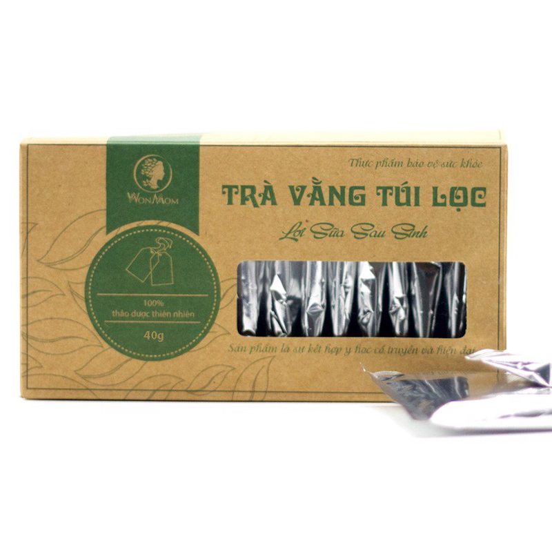 Trà vằng túi lọc Wonmom được đóng hộp gồm 20 gói túi lọc