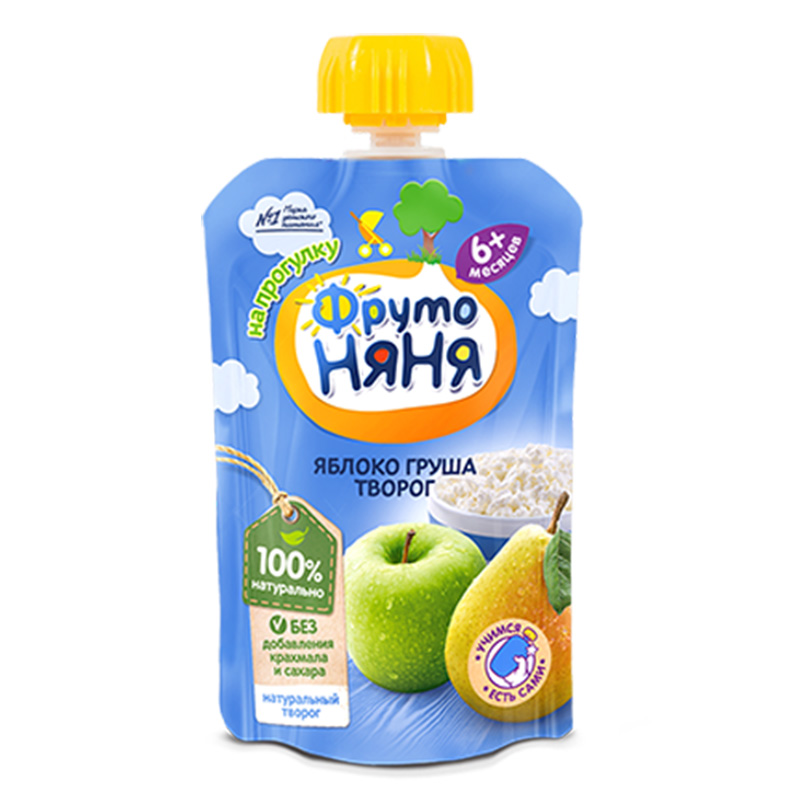 Trái cây nghiền vị táo, lê và phô mai tươi Fruto Nyanya (90g)