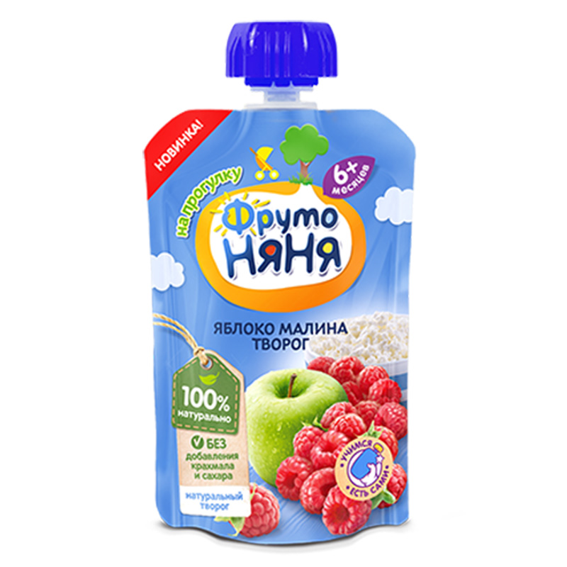 Trái cây nghiền vị táo, mâm xôi và phô mai tươi Fruto Nyanya (90g)