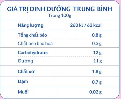 - Sản phẩm 3 KHÔNG: KHÔNG đường, KHÔNG chất bảo quản, KHÔNG chất tạo màu