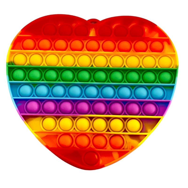 Trò chơi bóp bong bóng trái tim 2962 được chế tạo bằng silicone dẻo, kết cấu giống với những tấm xốp hơi với nhiều hình dạng sinh động, màu sắc bắt mắt. Bé chỉ cần nhấn các bong bóng trên những tấm màu và tạo ra các âm thanh cực kỳ vui tai.