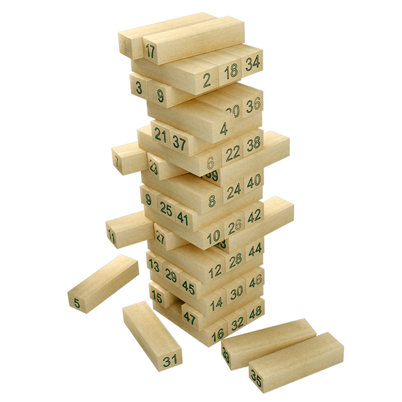 Có thể chơi hai hoặc nhiều người (nếu cả gia đình tham gia thì càng vui). Người chơi quy định cách rút, mỗi lượt người chơi được rút ra một thanh gỗ từ giữa hoặc dưới cùng tòa tháp và đặt thanh gỗ vừa rút ra lên trên đỉnh tháp. Trò chơi tiếp tục như vậy, với mỗi lượt của từng người chơi cho đến khi tháp đổ.