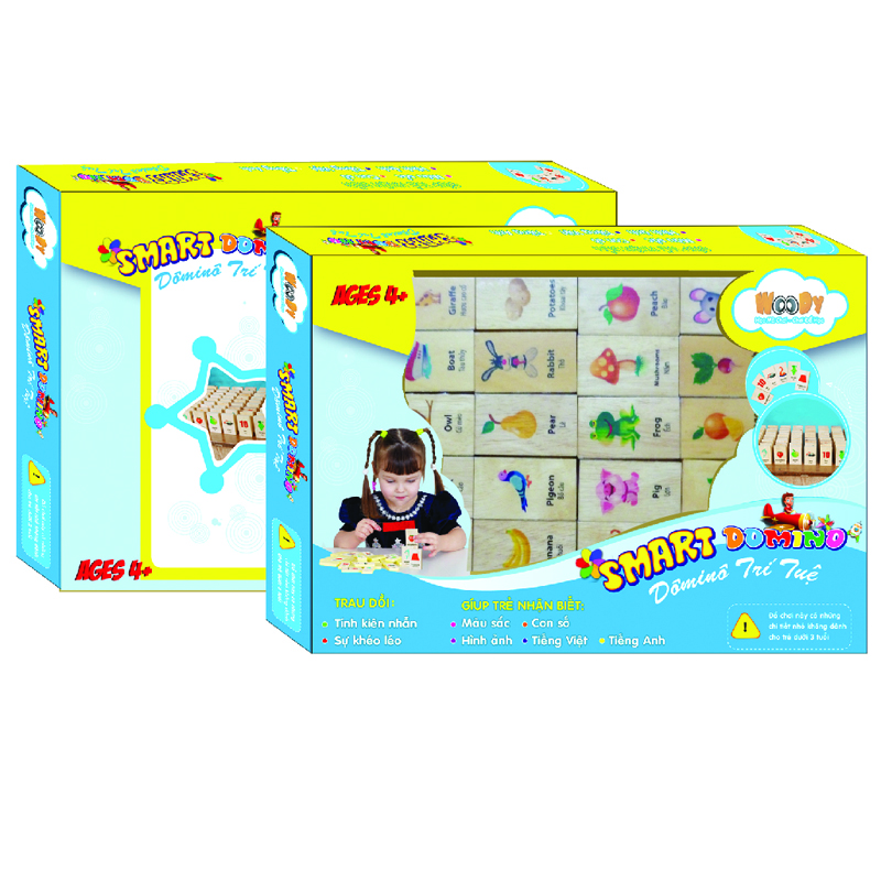 Trò chơi trí tuệ Smart Domino là bộ đồ chơi học tập dành cho các bé từ 4 tuổi trở lên. Thông qua các quân cờ bằng gỗ được in hình chữ cái, các bé sẽ ghép ra những từ có nghĩa. Smart Domino là trò chơi nổi tiếng rèn luyện kỹ năng tư duy cũng như độ nhận biết từ vựng của trẻ. Bộ sản phẩm được làm từ chất liệu gỗ tự nhiên của Woody có thể giúp trẻ học Tiếng Anh cũng như Tiếng Viêt, tăng cường khả năng tư duy cho bé.