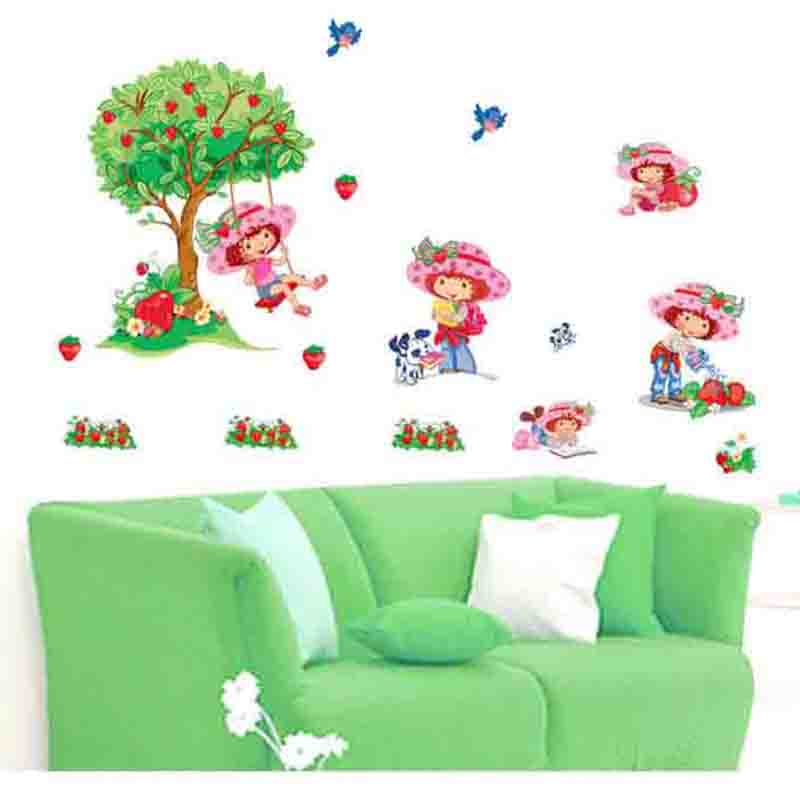 - Có thể dễ dàng bóc hình dán tường cô bé dâu tây ra để dán lại sang vị trí khác mà không làm bong tróc bề mặt tường.