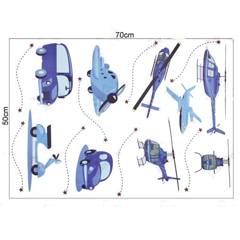 Tranh dán tường máy bay mang chủ đề về phương tiện giao thông, thích hợp cho phòng của bé trai. Decal dán tường có thể bóc ra dễ dàng để thay đổi mẫu khác không như vẽ bằng sơn rất khó khăn khi muốn có sự thay đổi. Tranh được làm từ chất liệu giấy cao cấp, không bị phai màu, chất keo có độ kết dính cao, có thể dán trên tường, bên ngoài giấy dán tường, trên kính, gỗ (tủ gỗ, cửa gỗ), nhựa (tủ, kệ nhựa), các đồ gia dụng bằng kim loại (tủ lạnh, lò nướng, máy giặt...)....