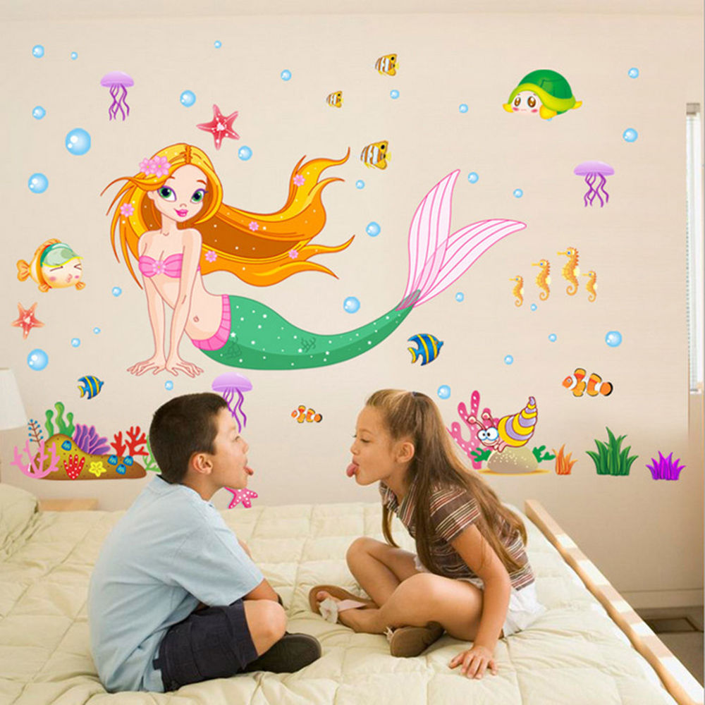 Tranh dán tường nàng tiên cá M055 tô điểm cho bức tường sinh động đáng yêu hơn, không gian trở nên xinh xắn, mang thiên nhiên vào căn phòng của bạn. Màu sắc rực rỡ, sắc nét, thiết kế vi tính, được cắt sẵn, có hình minh họa dán theo các bước.