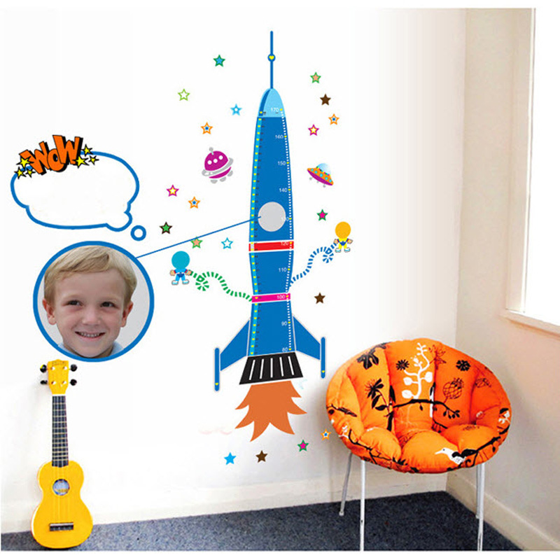 Tranh dán tường phi thuyền đo chiều cao đặc biệt thích hợp để bạn trang trí phòng ngủ cho bé nhất là các bé trai. Tranh có thể dùng làm thước đo chiều cao tiện lợi. Deca dán tường được làm bằng giấy cao cấp, hình ảnh trên decal không phai bạc mầu, chống thấm, chống rêu mốc, chống trầy xước.