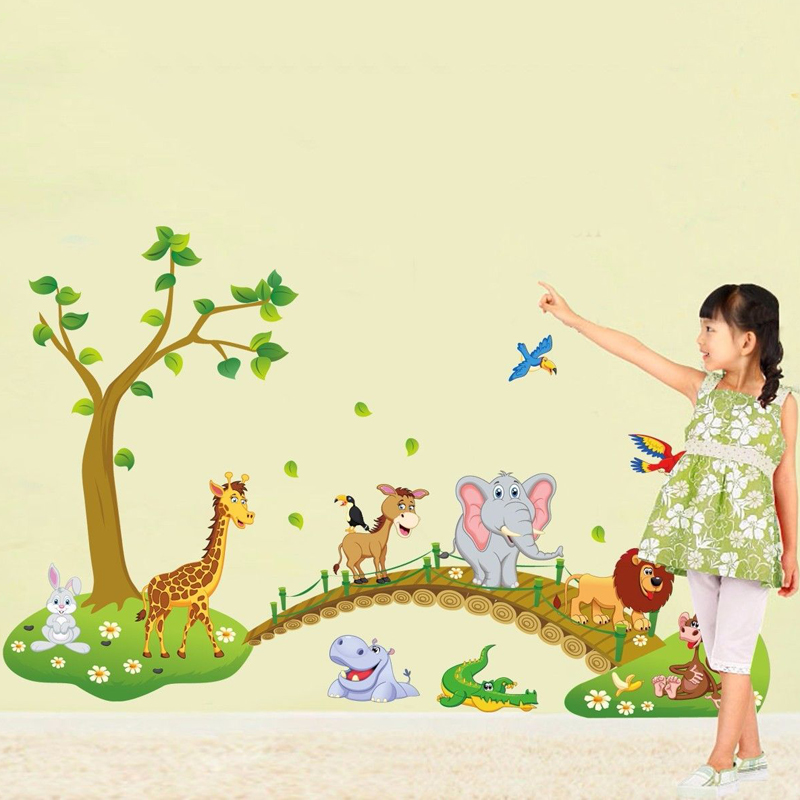 Tranh dán tường với hình ảnh thú ngộ nghĩnh, được các bé yêu thích