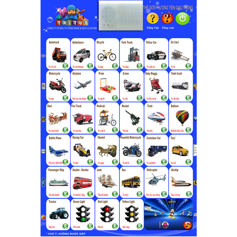 Bộ rau củ này với phát âm song ngữ, giúp bé học tiếng Anh dễ dàng cũng như giúp bé làm quen với các phương tiện giao thông