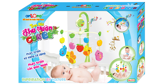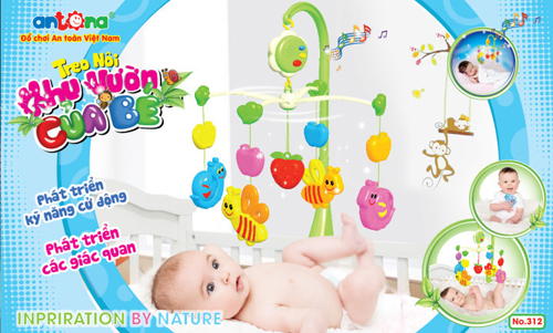 Treo nôi khu vườn của bé Antona No.312 là bộ sản phẩm treo nôi đầu tiên của Việt Nam có âm nhạc bản quyền mang đậm dấu ấn văn hóa của Việt Nam. Treo nôi được làm từ chất liệu 100% nguyên sinh, kết hợp nhiều hình thú bắt mắt sẽ thu hút sự chú ý của bé, giúp bé phát triển thị giác, thính giác từ nhỏ.