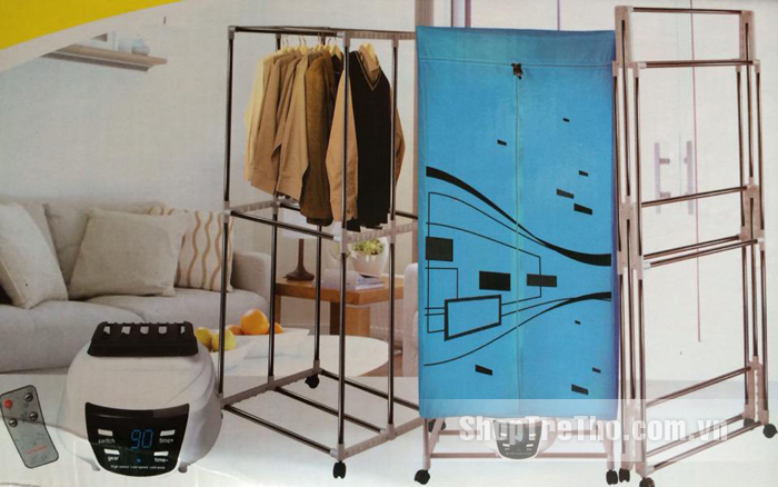 Tủ sấy quần áo Holtashi 2 tầng - Được thiết kế giống như một tủ treo quần áo, khung sắt sơn tĩnh điện chịu nhiệt hoặc bằng inox, có các đầu nối nhựa, đầu nối này cũng có tác dụng các nhiệt giữa khung thép (hay bị nóng hơn) và vải trùm để vải được bền lâu hơn.