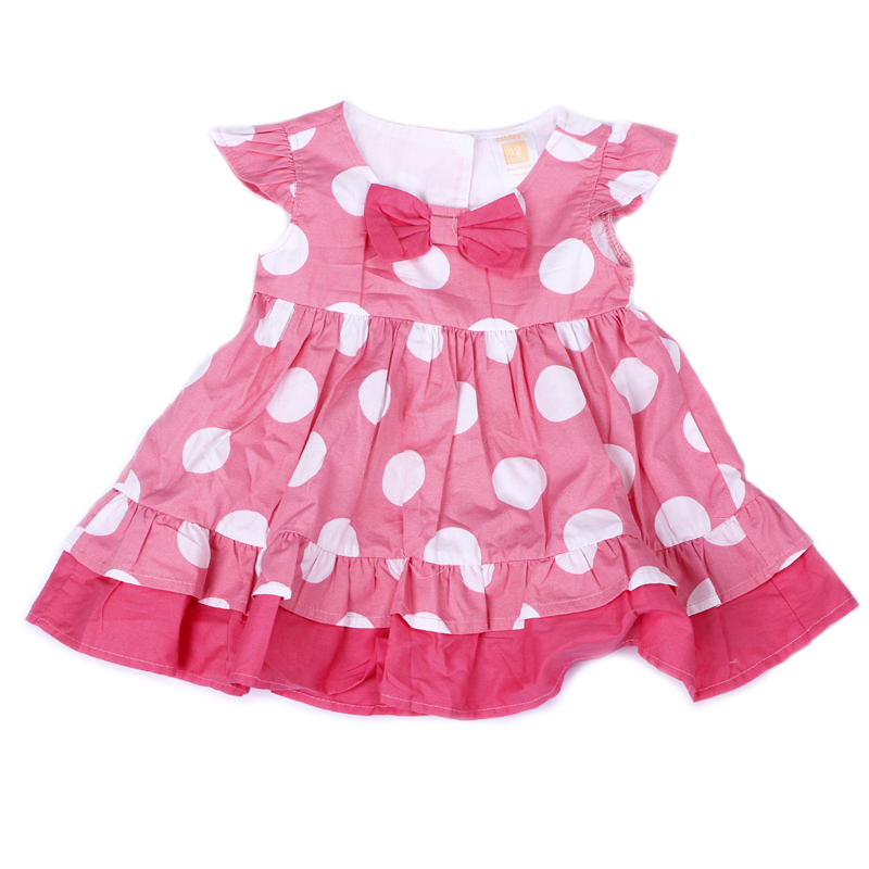 Áo váy màu chám bi hồng, chất liệu vải mềm, cảm giác mát tay khi sờ lên áo