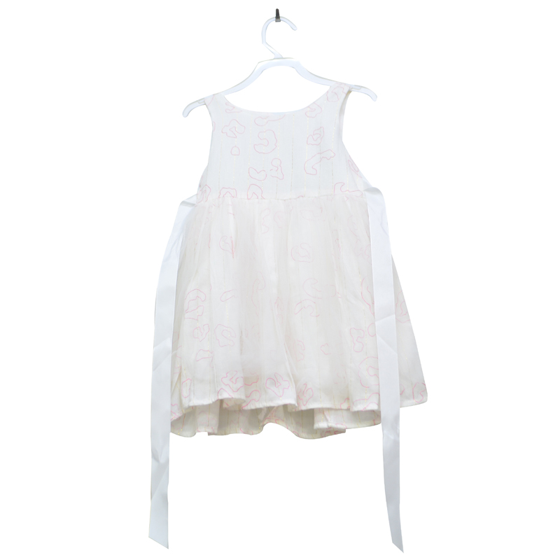 - Váy thiết kế dáng xòe và cổ áo may tròn, tăng nét đáng yêu cho bé