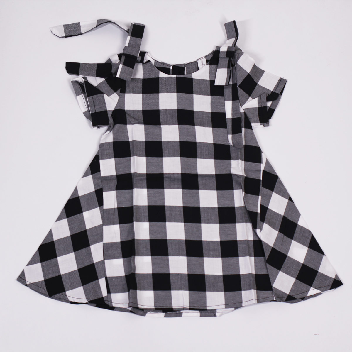 Mô tả Váy bé gái kẻ caro đính nơ vai (1-6T)