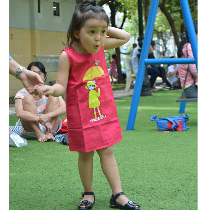 - Form váy suông che khuyết điểm và cho bé thoải mái trong mọi hoạt động.
