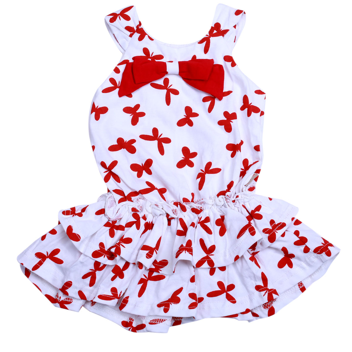 - Váy thiết kế dáng xòe với họa tiết hoa xinh xắn và chiếc nơ trước ngực, tạo điểm nhất cho thiết kế