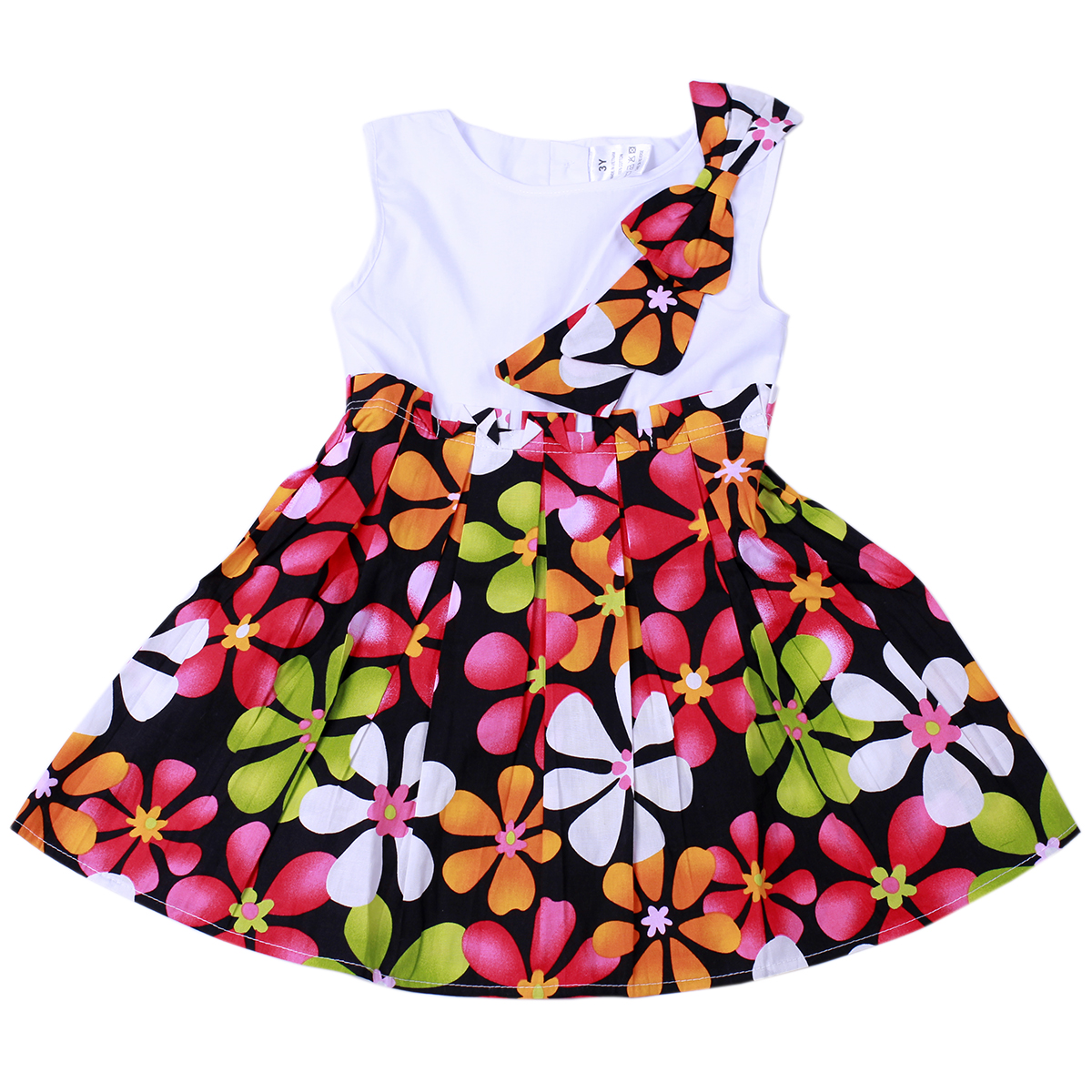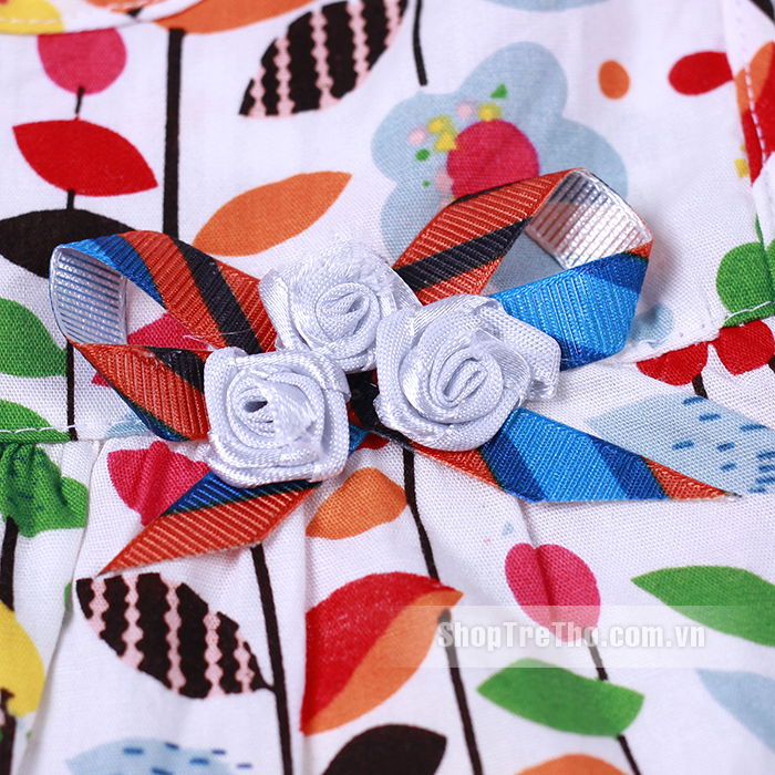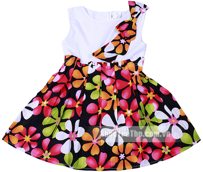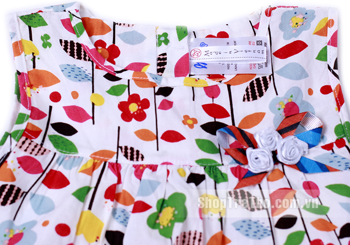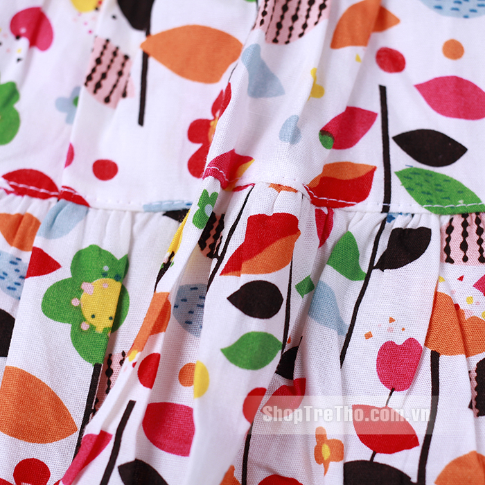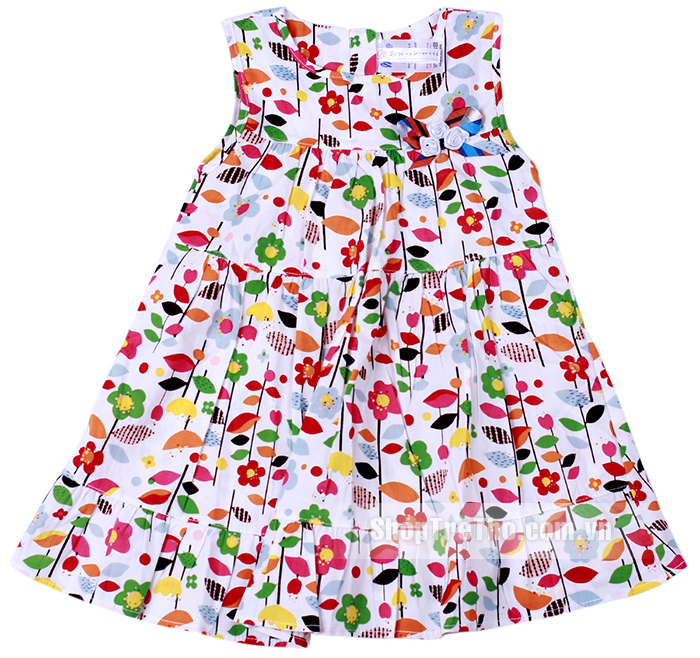 - Váy có họa tiết hoa lá nhiều màu sắc xinh xắn, phù hợp với độ tuổi của các bé