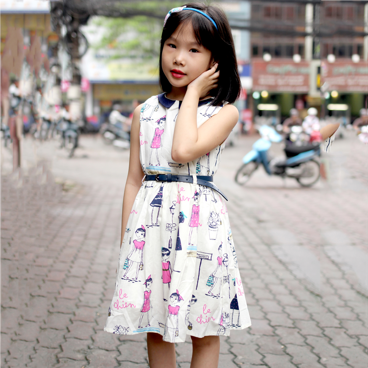 Váy hè bé gái Thái Lan in cô gái cổ sen 533876 dành cho bé từ 2 tuổi đến 6 tuổi