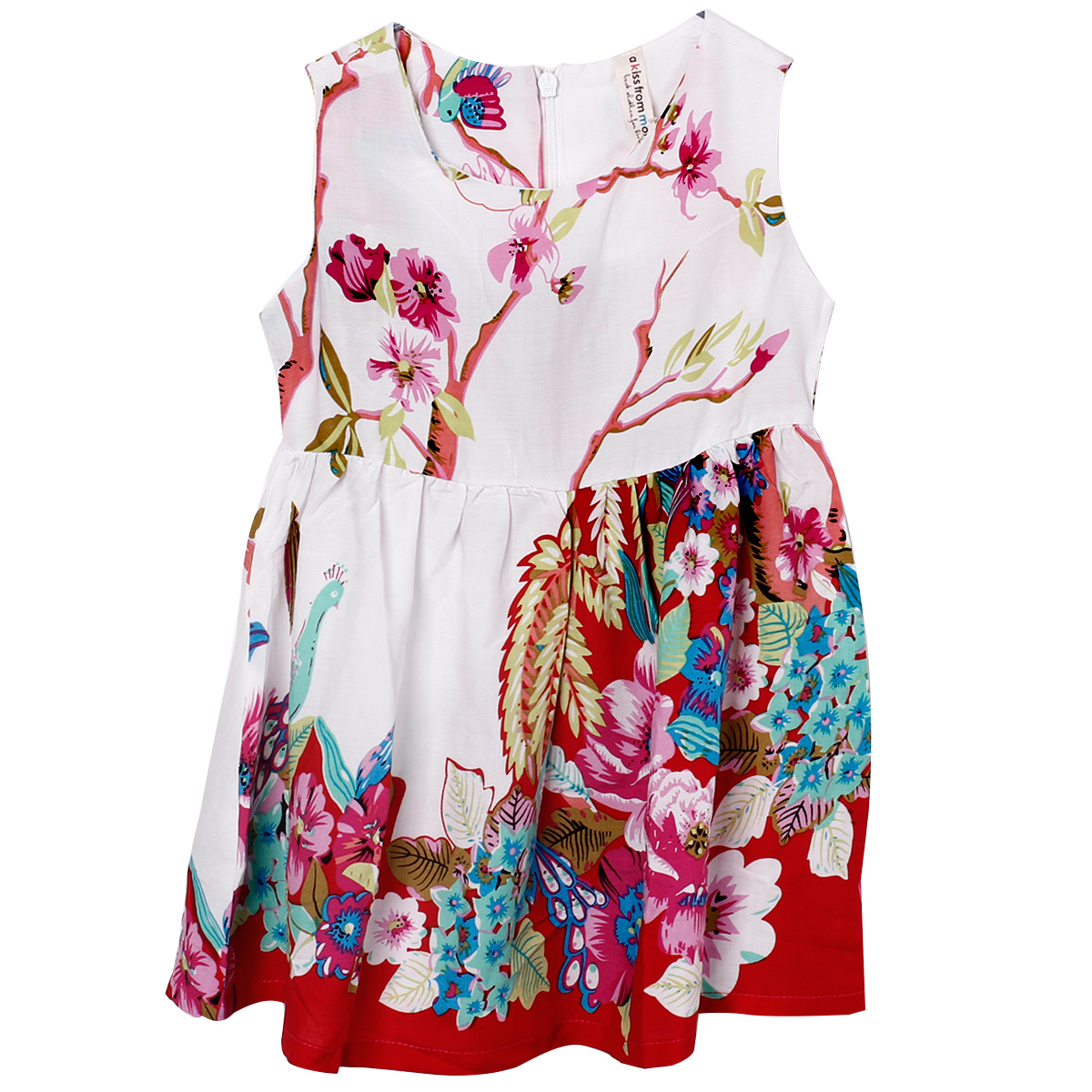 Váy lanh bé gái với họa tiết màu sắc nổi bật
