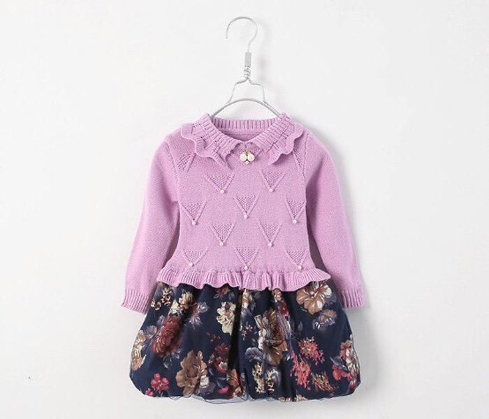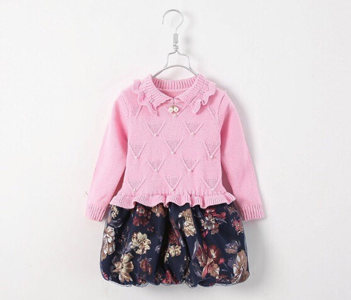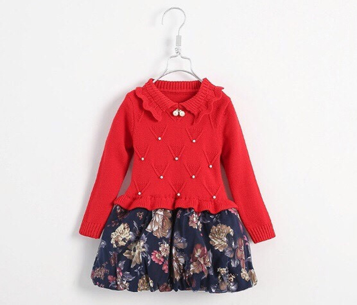- Kiểu váy liền kết hợp giữa len và vải cotton mềm mại, không chỉ giúp giữ ấm cho bé mà còn tăng thêm nét điệu đà, đáng yêu của trẻ