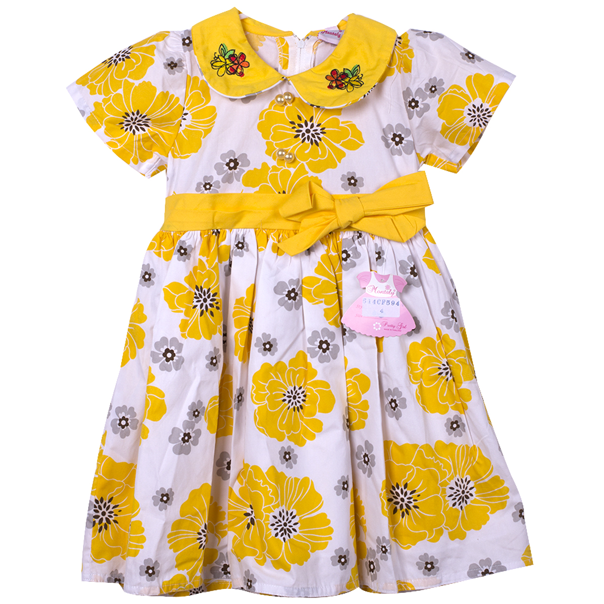 - Thiết kế ngắn tay, cổ sen, và chân váy xòe giúp bé thoải mái, mát mẻ hơn khi mặc