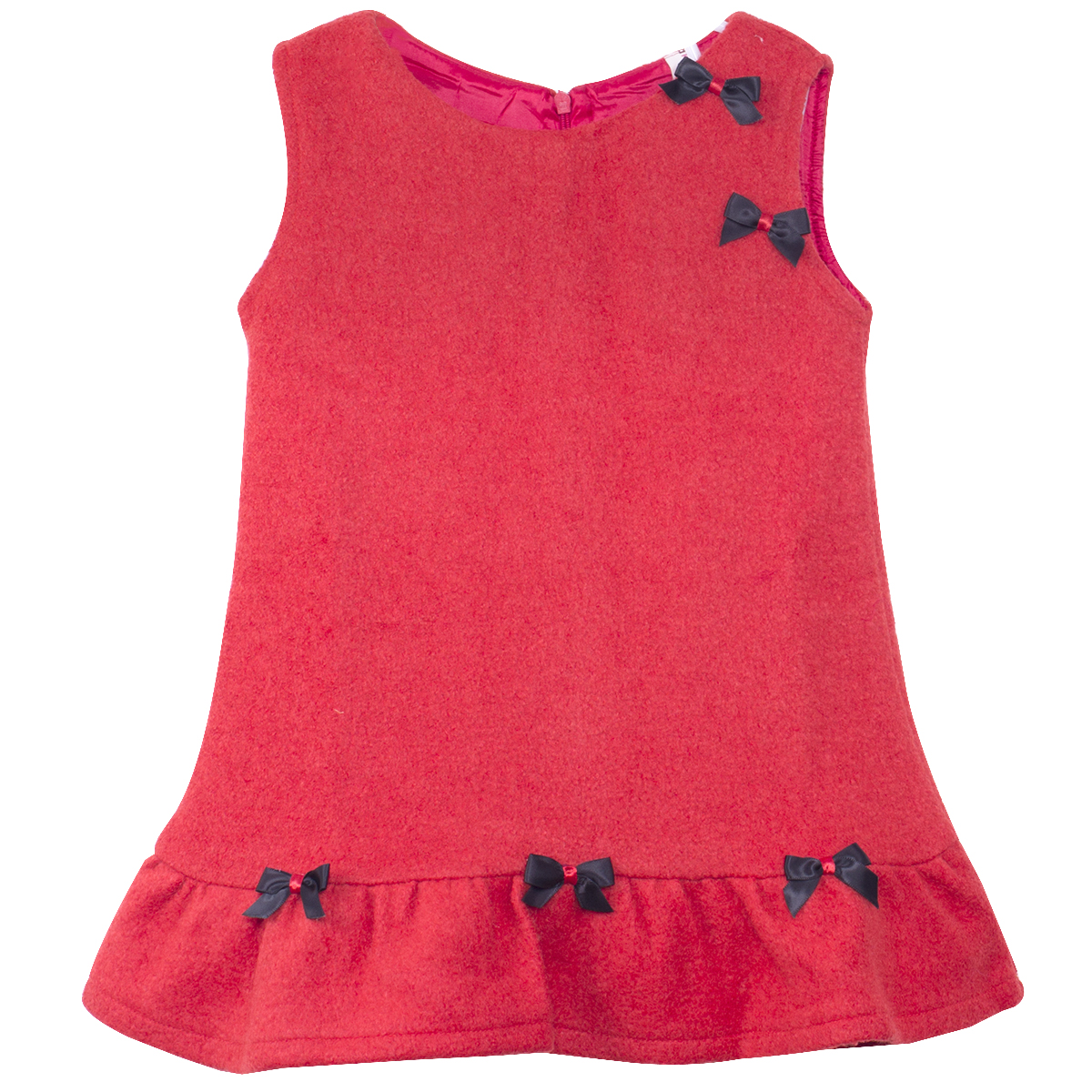 - Váy cho bé gái được may bằng chất liệu dạ lì dày dặn, thích hợp mặc trong những ngày lạnh.
