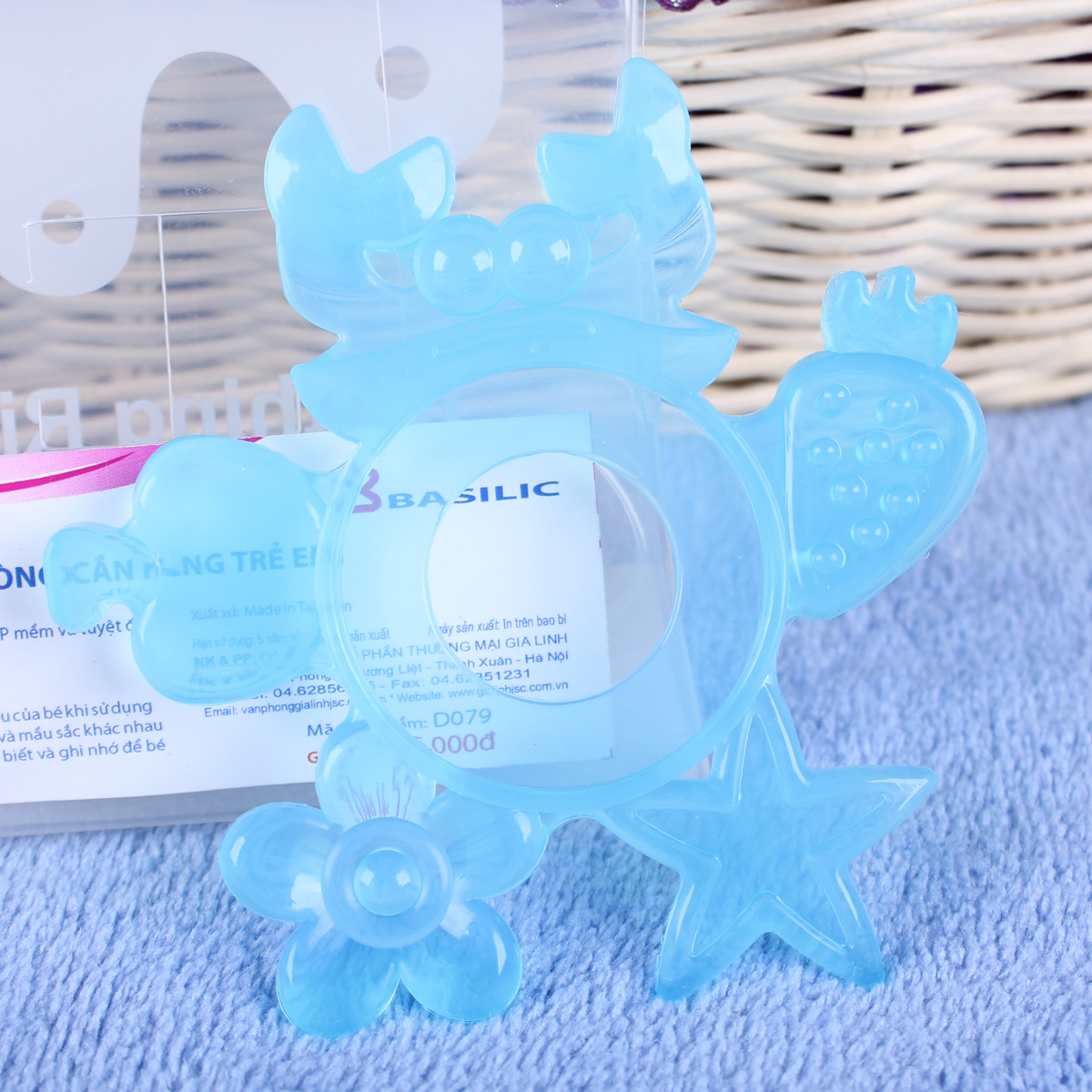 Với các hình đa dạng như con cua, quả táo, bông hoa, ngôi sao hay dâu tây Vòng cắn răng Basilic D079 giúp bé còn nhận biết các hình ảnh về đồ vật.