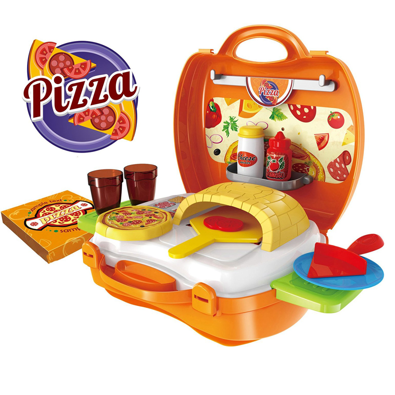 - Bộ gồm 22 chi tiết như: các lọ đựng gia vị, mô hình bánh pizza, vali đựng...