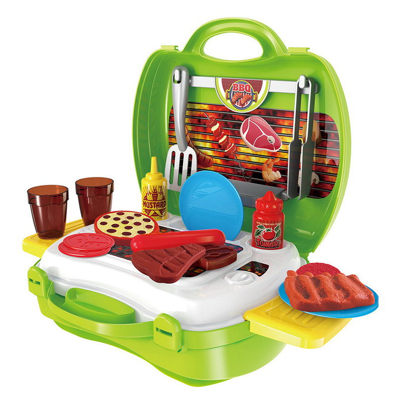 Vali nhà bếp Bowa 8312 - Tiệc nướng ngoài trời với thiết kế dạng vali nên bé có thể xếp gọn lại để cầm theo khi đi lịch hay đi chơi xa tiện lợi. Các dụng cụ nấu nướng được thiết kế mô phỏng sống động như bếp nấu, nồi, chảo...bé có thể chơi trò nấu ăn, bán hàng ăn với bạn bè, tăng khả năng giao tiếp, trí tượng tưởng cho trẻ.
