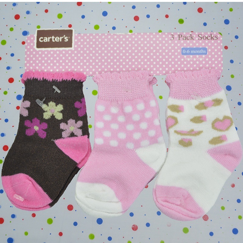Vỉ 3 đôi tất carter với thành phần 100% cotton, mềm mại, thoáng mát, thấm hút mồ hôi, không gây kích ứng cho làn da mỏng manh của bé yêu. Thiết kế màu sắc và họa tiết xinh xắn, tạo cảm giác thích thú, bé tập làm quen nhận biết màu sắc.