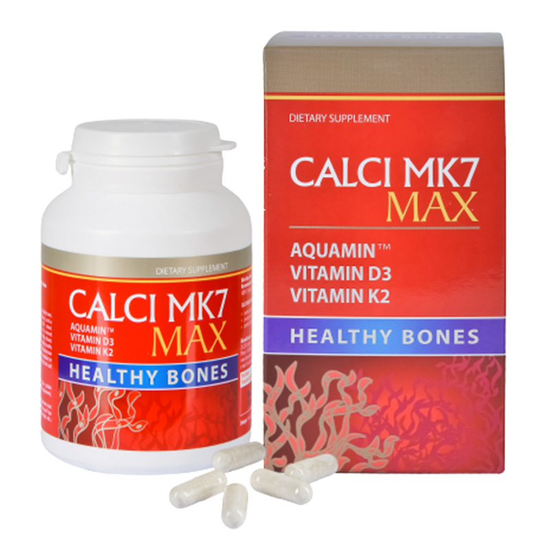 Viên uống Canxi Max MK7 (60 viên/hộp) chứa bộ ba thành phần ưu việt cho sự phát triển chiều cao tuổi dậy thì: Canxi Aquamin, vitamin D3 và MK7 giúp bổ sung khoáng chất và vitamin cần thiết cho sự phát triển xương.