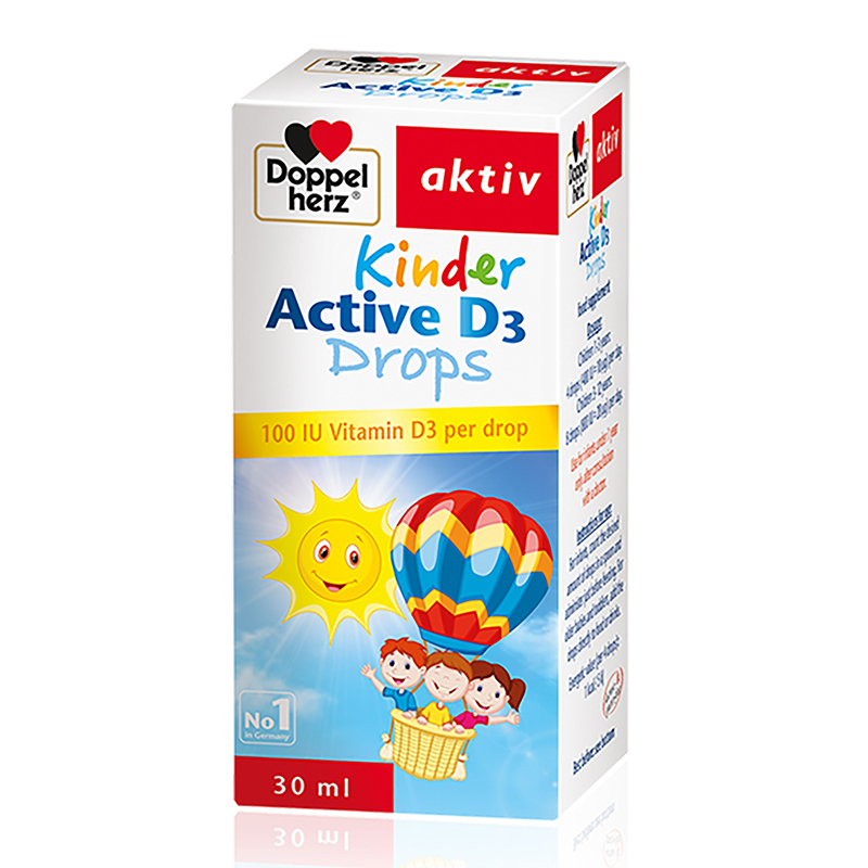 Vitamin D3 Doppelherz Kinder Active D3 (30ml) bổ sung Vitamin D3 giúp tăng hấp thu Canxi, giúp xương hình thành và phát triển chắc khỏe. Vitamin D3 trong dầu hướng dương tự nhiên không có chất bảo quản và hương liệu, an toàn cho trẻ sơ sinh và trẻ nhỏ. Sản phẩm không mùi không vị phù hợp cho mọi lứa tuổi, không gây chán ăn, không gây bỏng lưỡi trẻ.