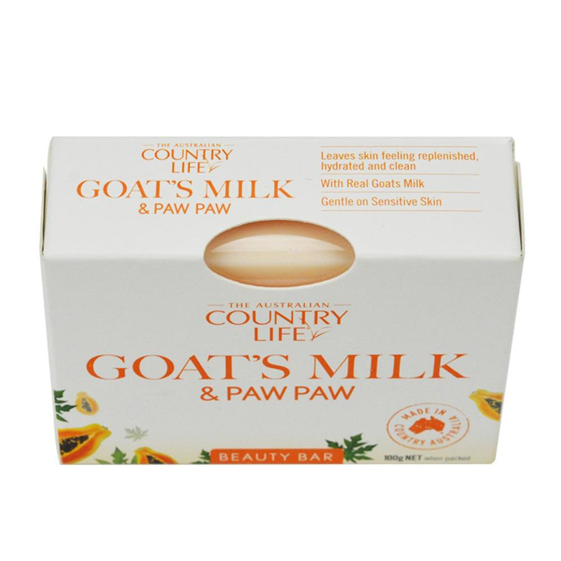 Xà bông Country Life Goats Milk & Paw Paw 100g (hộp) với công thức thành phần chứa sữa dê & hương đu đủ Úc giúp loại bỏ da chết, làm sạch và dưỡng ẩm da hiệu quả. Thiết kế dạng bánh xà phòng nên rất thuận tiện để gia đình bạn sử dụng theo mục đích như làm xà bông rửa tay, xà bông tắm...