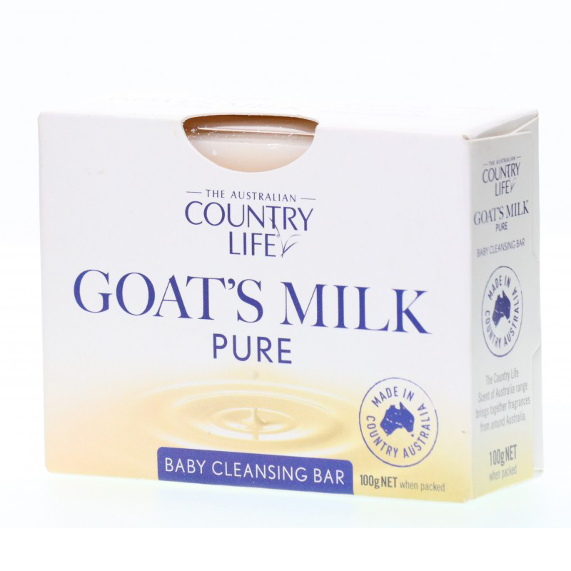 Xà bông Country Life Goats Milk Pure Baby 100g (hộp) với thành phần chứa sữa dê & tinh dầu hạnh nhân, làm sạch và dưỡng da hiệu quả. Chiết xuất từ sữa dê, an toàn dùng cho da em bé, trẻ em, người có da nhạy cảm.