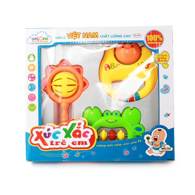 - Bộ sản phẩm không những mang lại cảm giác thích thú mà còn giúp bé phân biệt màu sắc và cảm nhận được các âm thanh do xúc xắc tạo ra.