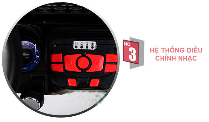 - Có đầy đủ các chức năng: Còi, đèn, nhạc, volum, số tiến/lùi, điều khiển từ xa, dây an toàn, cổng kết nối USB để bé thoả sức nghe những bài nhạc bé thích