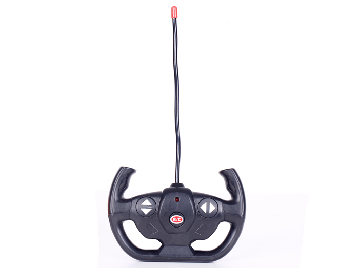 Remote điều khiển với các nút bấm (tiến lùi, rẽ trái, rẽ phải), thiết kế mô phỏng chiếc vô lăng