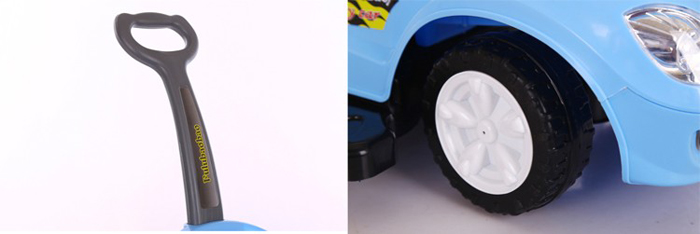 - 4 bánh xe được làm bằng nhựa cứng chất lượng tốt, kết hợp với phần ghế ngồi rộng rãi và vô lăng chắc chắn giúp các bé dễ dàng sử dụng xe thoải mái và an toàn.