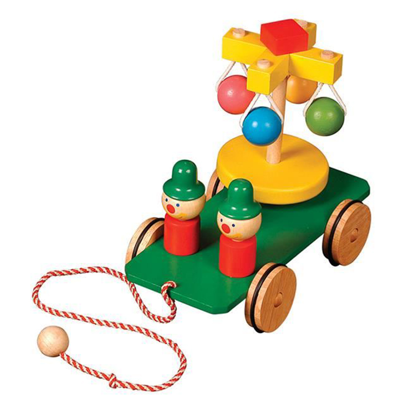 - Xe chuyển động vui với hai chú hề ngộ nghĩnh và đĩa qua với các viên bi gỗ nhiều màu sắc xoay tròn khi xe chuyển động sẽ mang lại cho bé nhiều thích thú.