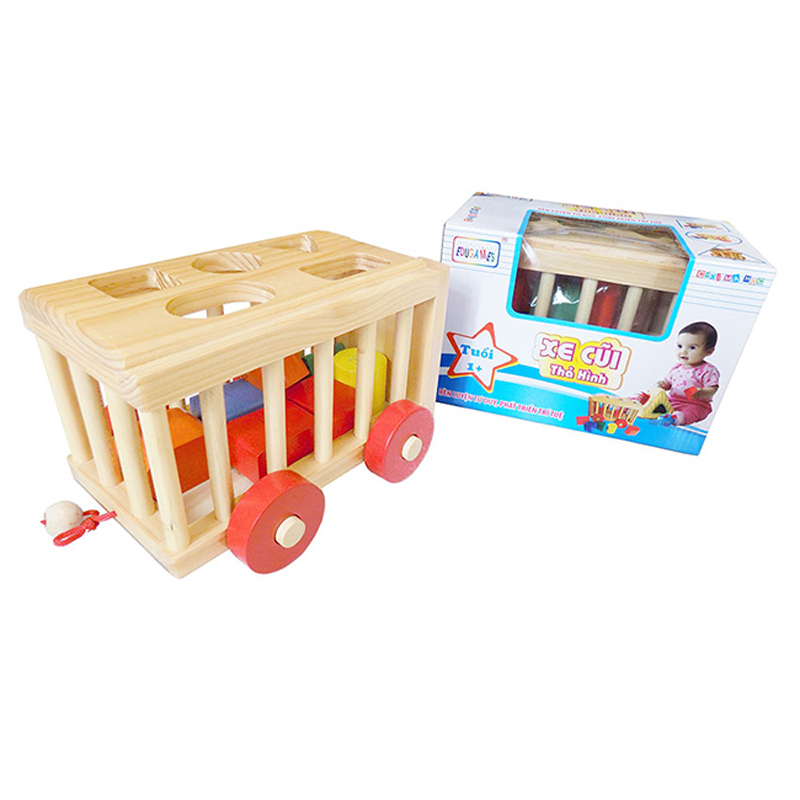 Sản phẩm có 1 xe cũi xinh xắn và nhiều hình khối đơn giản như: hình vuông, hình tròn, hình chữ nhật,…, bé phải tìm đúng hình mới có thể thả lọt vào xe gỗ, nếu không tìm đúng hình sẽ không chui lọt. Phân biệt được hình khối, sẽ giúp bé dễ tiếp cận với môn toán học sau này.