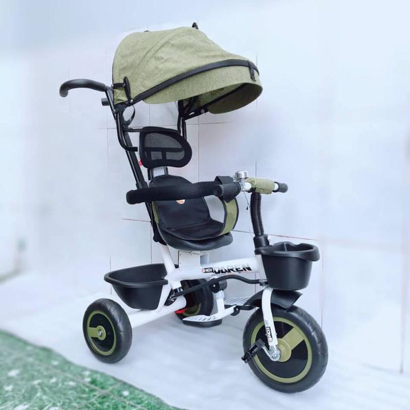 - 3 bánh xe to làm bằng chất liệu cao su có diện tích tiếp xúc với đường tốt. Tăng độ vững chãi cho xe và tạo sự êm ái khi di chuyển.