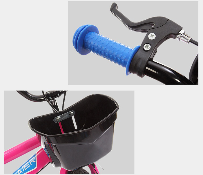 - Xe có thiết kế đầy đủ: giỏ xe, chuông, phanh, bánh phụ, chắn bùn,...