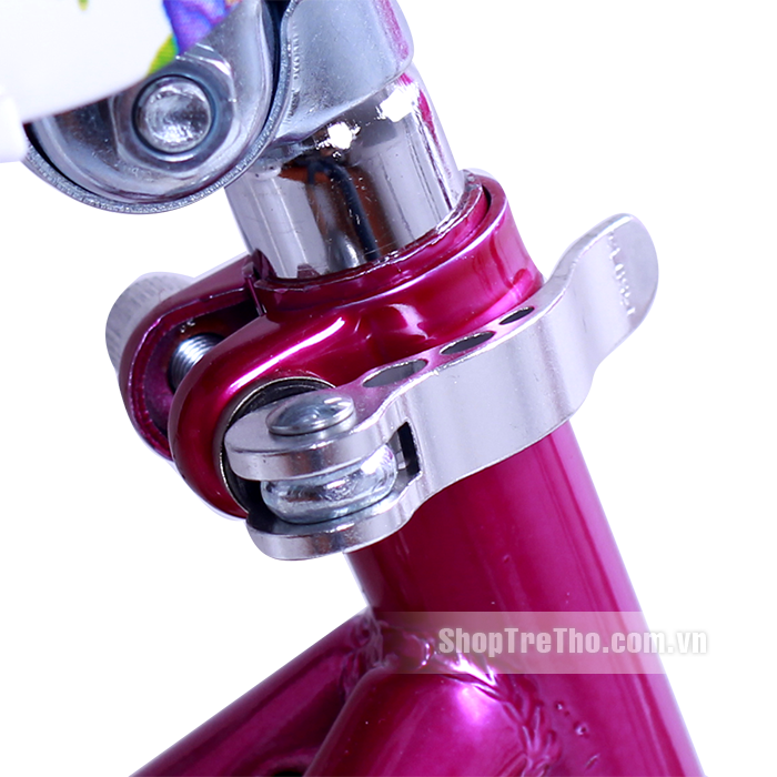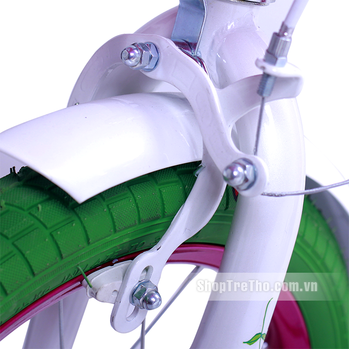 - Xe được trang bị đầy đủ: yên trước yên sau có đệm êm, phanh chữ V an toàn, chuông, bộ phận giảm sóc, giỏ phía trước để bé đựng đồ.