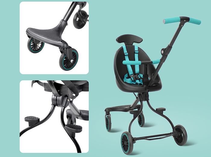 - Thiết kế tay đẩy phía sau chắc chắn, tiện lợi có phần kết nối với bánh trước của xe.