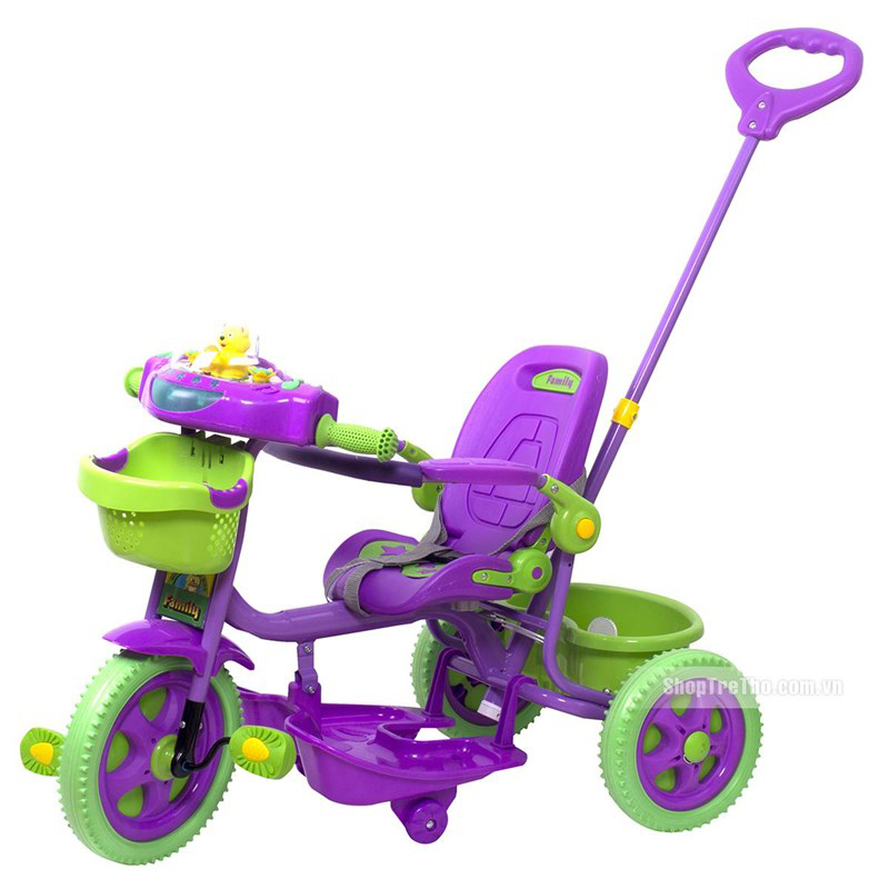 Xe đẩy 3 bánh family 959 có nhiều màu sắc và đầy đủ tính năng cải tiến hơn rất nhiều so với chiếc xe đẩy con kiến như : Có tay đẩy phía sau, có chỗ ngồi khá rộng rãi, có nhạc, có đồ chơi phía trước, giỏ trang trí xinh xắn và dễ thương. Xe có chỗ để chân khi ngồi để mẹ đẩy và có thêm bàn đạp để tự đạp xe đi chơi.
