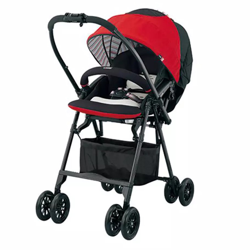 Xe đẩy Combi Mechacal Handy 2cas đỏ sọc có thiết kế an toàn và tiện dụng cho mẹ và bé