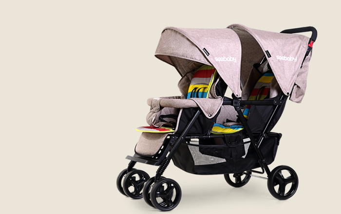 Xe đẩy đôi Seebaby T33 màu nâu nhạt
