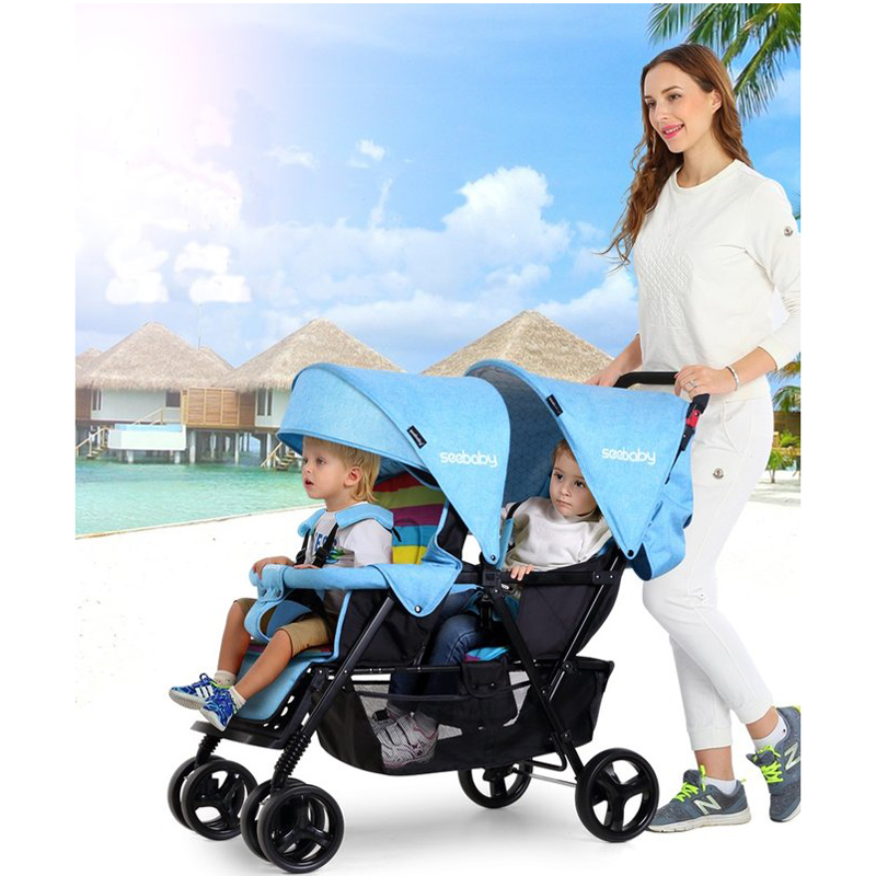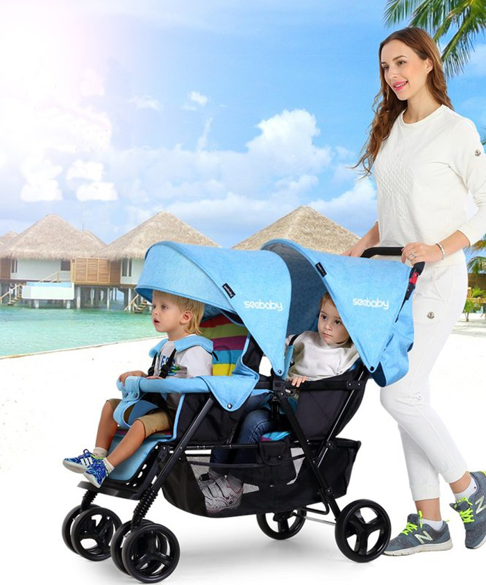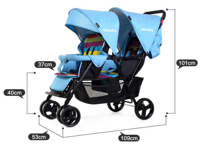 Xe đẩy đôi Seebaby T33 màu xanh da trời