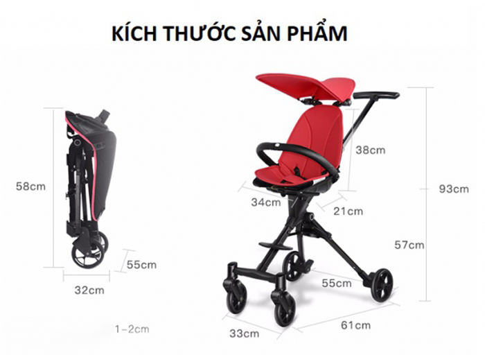 - Sau khi gập gọn, kích thước của xe chỉ bằng một chiếc túi xách của mẹ. Vì thế cha mẹ có thể xách tay, đeo vai hoặc để trong cốp xe khi di chuyển vô cùng tiện lợi.